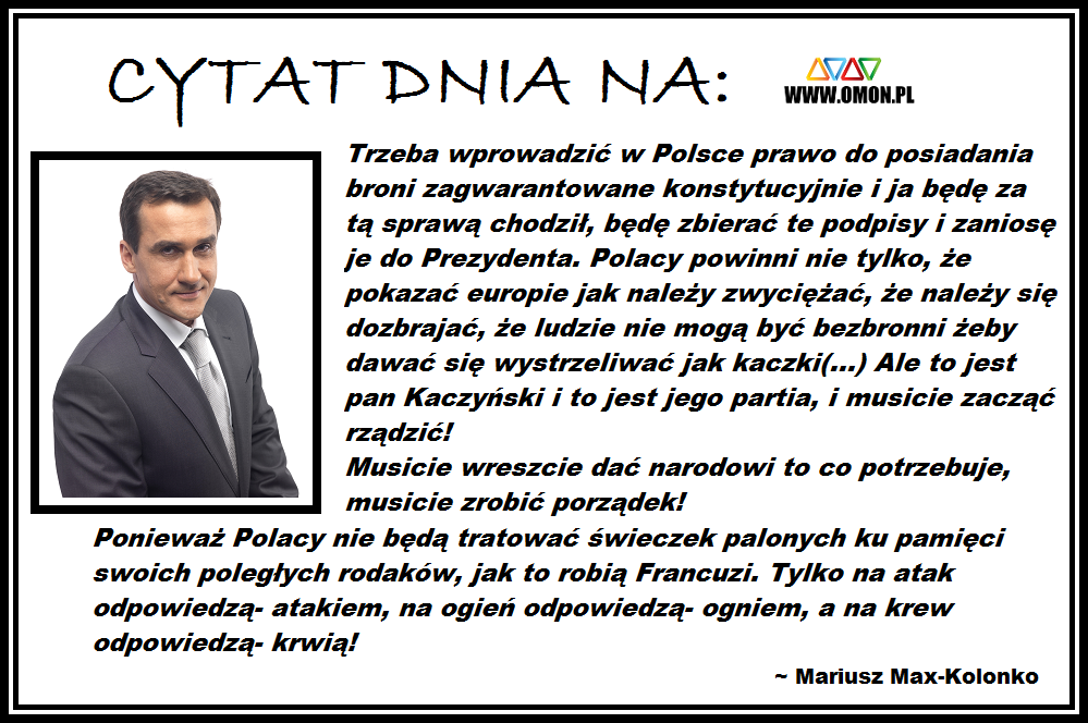 – Europa musi zdać sobie sprawę z tego, że jest w stanie wojny, że Kalifat chce was wybić, czego wy nie rozumiecie? Ilu ludzi musi jeszcze zginąć, żeby politycy w Europie i ludność cywilna pozbyła się tej politycznej poprawności i zrozumiała, że ci muzułmanie wojujący chcą was wytłuc co do nogi – mówi Kolonko.